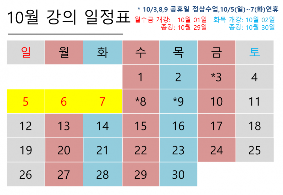 ※ 10/5(일) ~ 10/7(화) 추석 기간으로