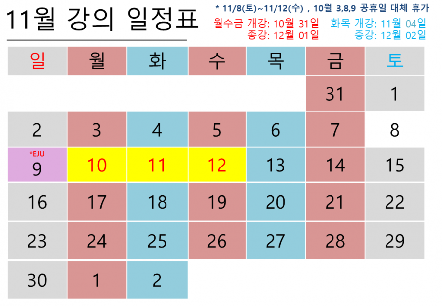 ★11/8(토)~11/12(수) 모든 수업이 휴강으로 진행되는 점