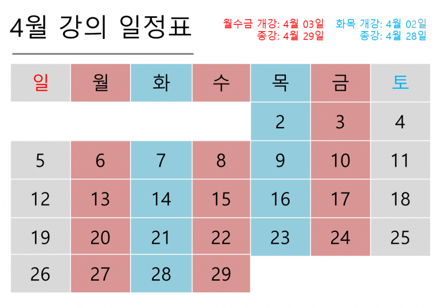 자세한 수업 시간과 수강료는 학원으로 문의 바랍니다.